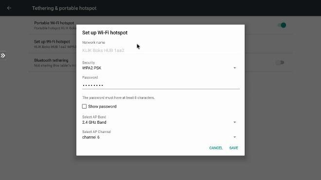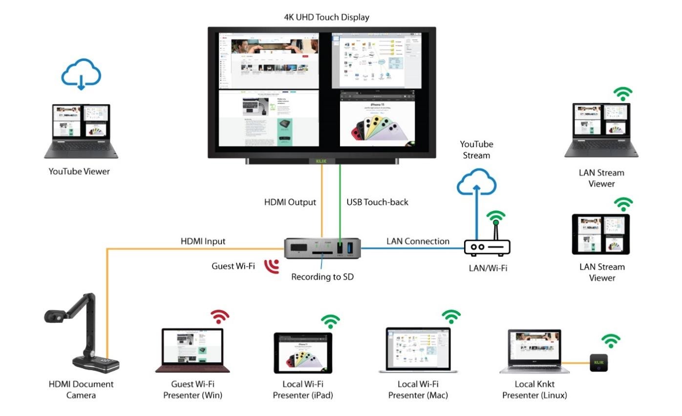 The Hotspot provides access to the KB1200 for screen sharing, and also provides access to network resources, including Internet access.