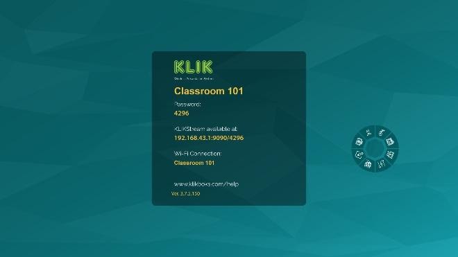 Prior to the start of the session, make a note of the KLIKStream address and password, to make it easier to share. Once the session has begun, this information will no longer be displayed on the screen, so it will be helpful for participants to have it posted on a whiteboard.